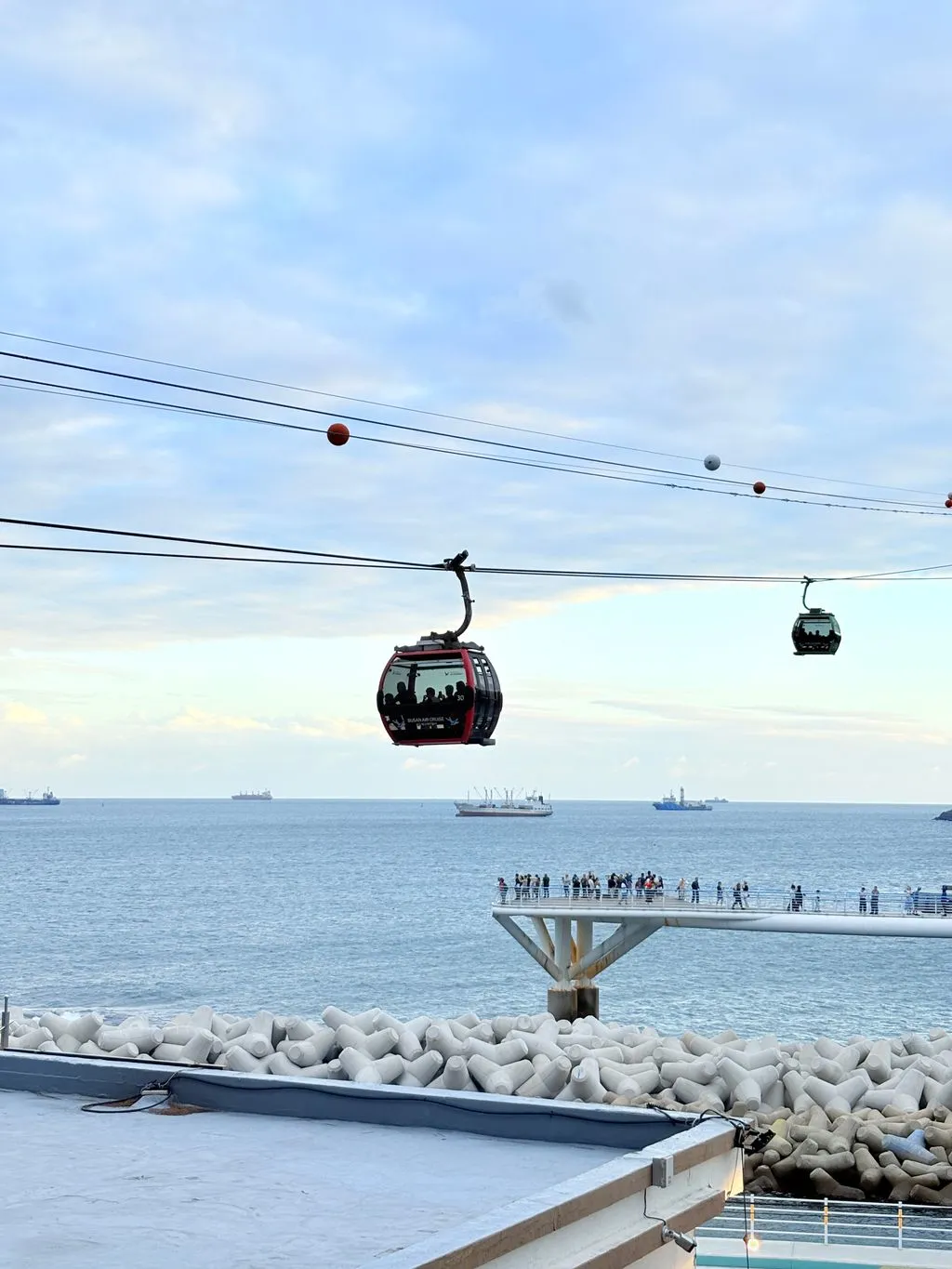 今天去了松岛坐缆车,也是小红书提到非常多的一个项目。票价分为普通(80)和水晶(106),水晶其实就是底部也是玻璃,其他的都一样,唯一的优点是水晶的缆车数量多,排队时间更少,个人觉得没必要买水晶的,普通的也能拍到好看的照片。那块还有一个海水浴场,有时间的可以去看看。
