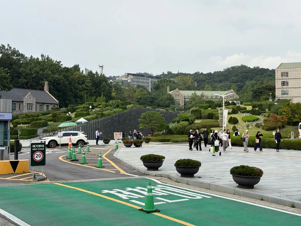 今天的目的地有梨花女子大学和弘大步行街。梨花女大可以随意进出,学校风景挺好看的,有草坪和高低不齐的教学楼,虽然面积不大,一会就能走完。