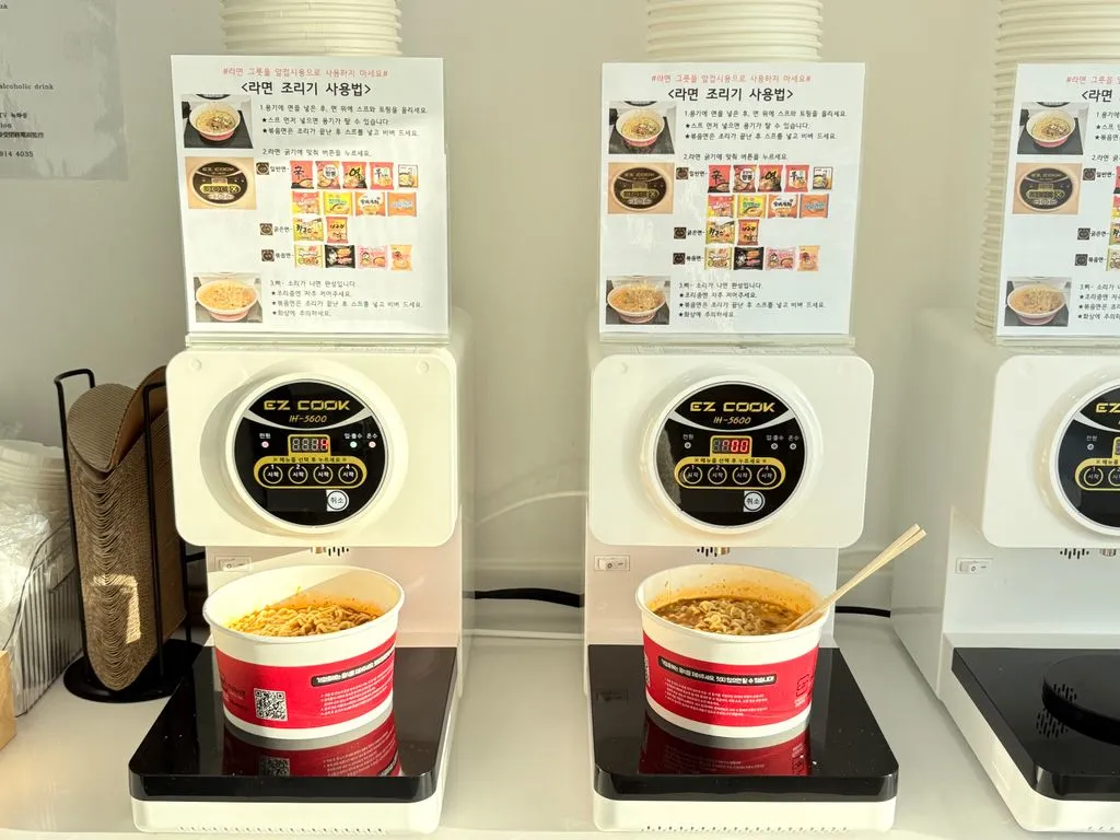 还顺便体验了一下韩国泡面,吃起来确实比国内的康师傅要好吃,面感觉更厚实更有嚼劲,汤底的味道也很浓郁,就是价格不是很友好,一包要19块了。