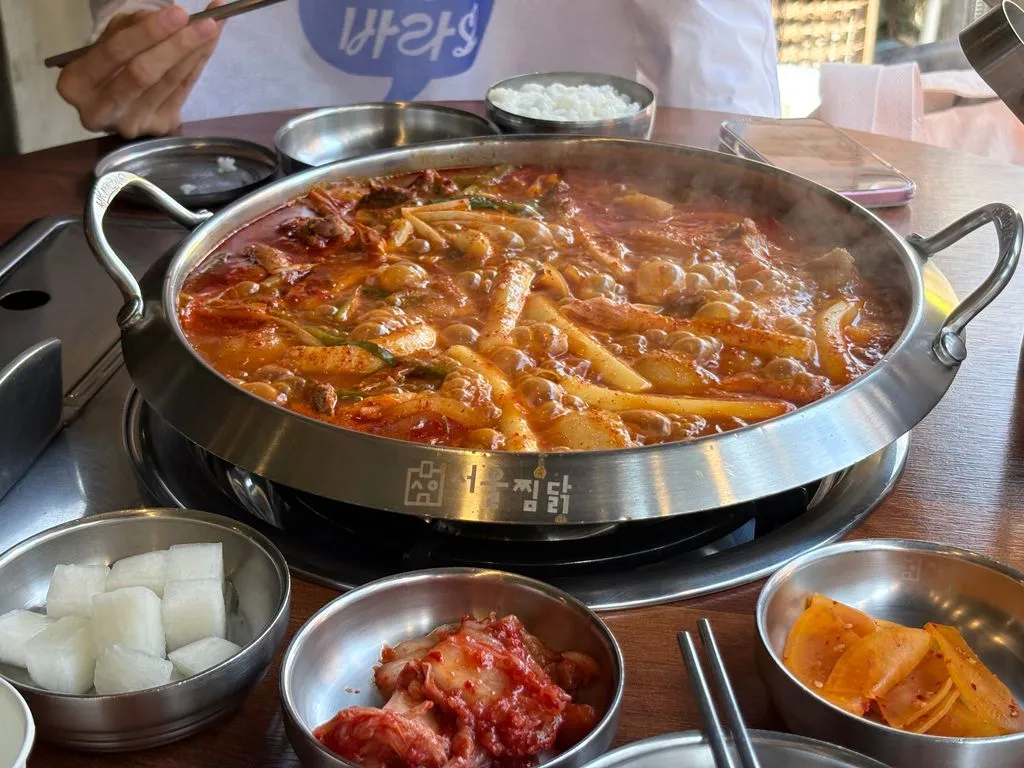 中饭在地铁站边上找到一家韩式炖鸡,32000两人份,鸡肉很多,很有性价比。辣汤炖的鸡肉很入味,里面还有年糕粉条土豆,绝对管饱。