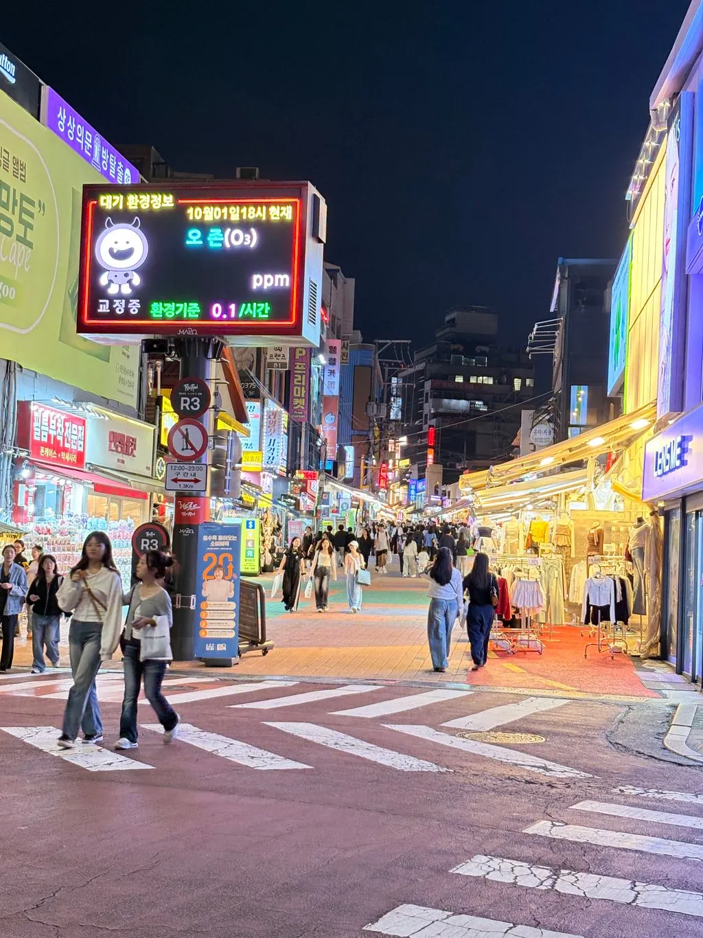 首尔的线下经济挺发达的,在一些比较热闹的区域逛,街边小店铺的招牌各色各样亮着灯,观感就很热闹烟火气,在上海很少有这样的感受,可能是上海的线上经济太发达,使得很大一部分线下流量都被分走了,而且上海大商场特别多,所以很多店铺都在商场里,街边小店就变少了。