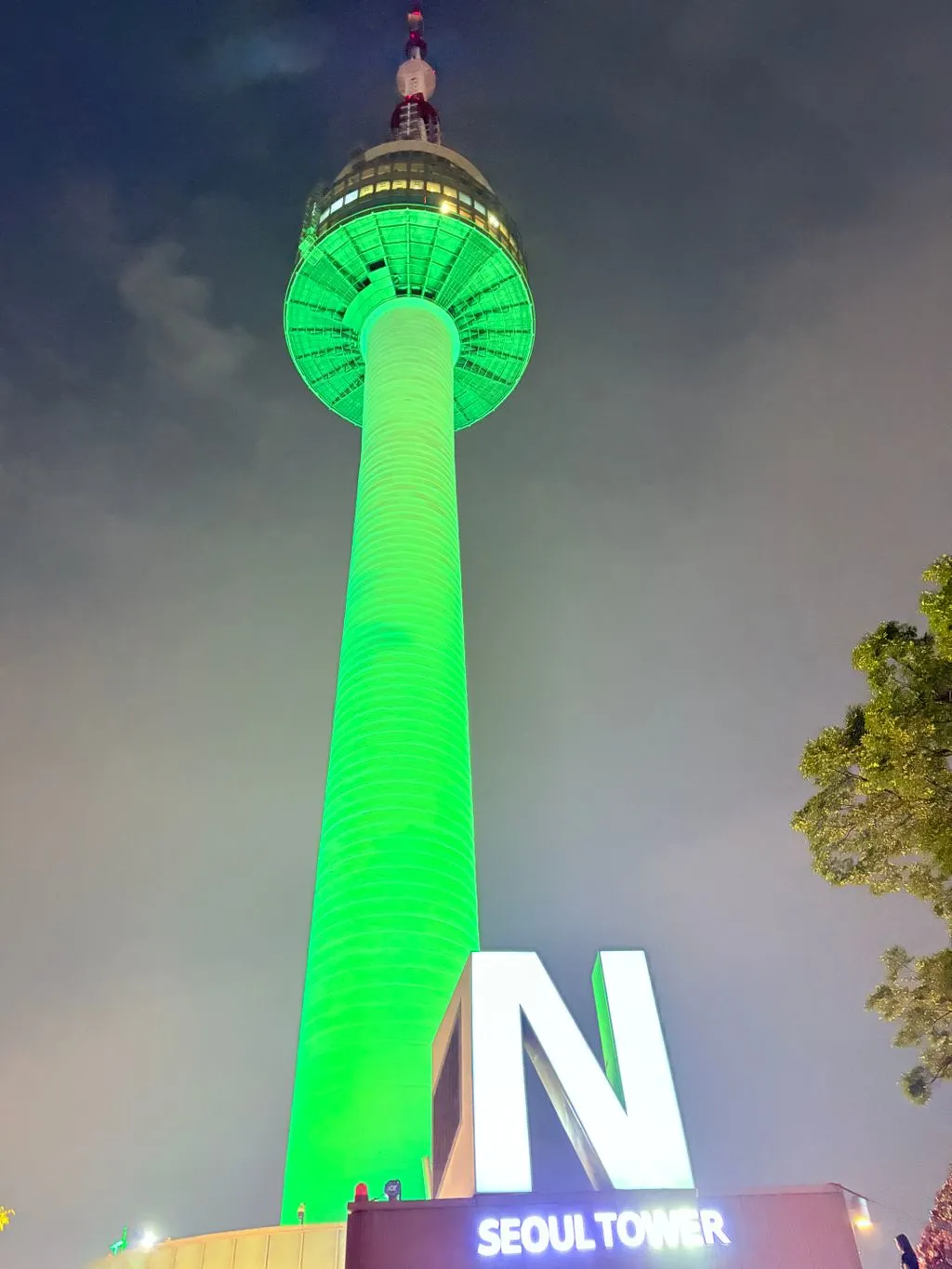 晚上去了首尔塔,可以坐地铁到忠武路地铁站,然后转公交车直达塔下。首尔塔建在南山上,上了首尔塔可以从山上俯瞰首尔市中心,高楼林立的夜景很好看。首尔塔下有来自各个国家的人,大家都说着不同的语言,很有国际村的感觉。
