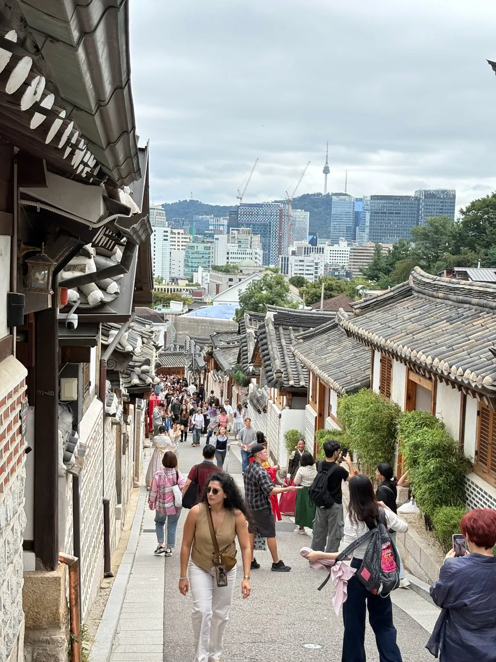 北村韩屋所,是一个韩国古代风格建筑区,建筑错落有致,搭配首尔起伏的地形,还挺好看。